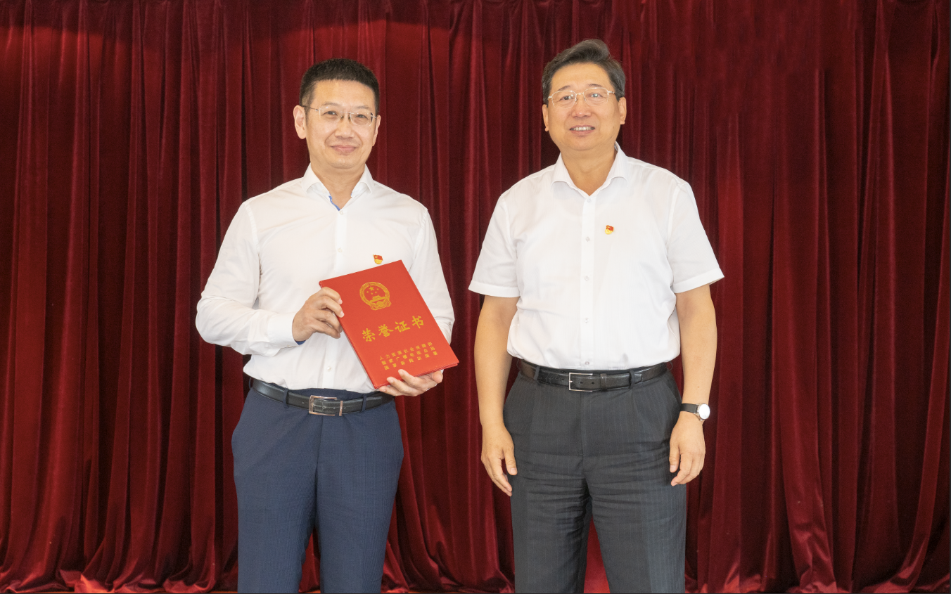 2021年9月14日,集团召开党委(扩大)会,会上集团党委书记、董事长康伟同志向原人文社科图书出版事业部颁发奖牌和证书,安东同志代表原人文社科图书出版事业部领奖。