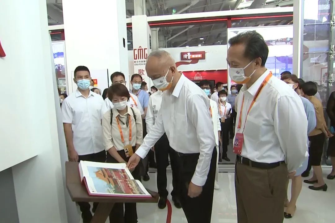 9月3日上午,市委书记蔡奇莅临2021年中国国际服务贸易交易会(简称服贸会)特设的文旅服务专题展区,视察北京出版集团参展情况。蔡奇一行参观了“十月”文学品牌展示墙,翻阅了《庆祝中华人民共和国成立70周年盛典图册》,了解了本届服贸会北京出版集团围绕献礼建党百年、冰雪冬奥、北京文化等主题的重点出版物参展情况。