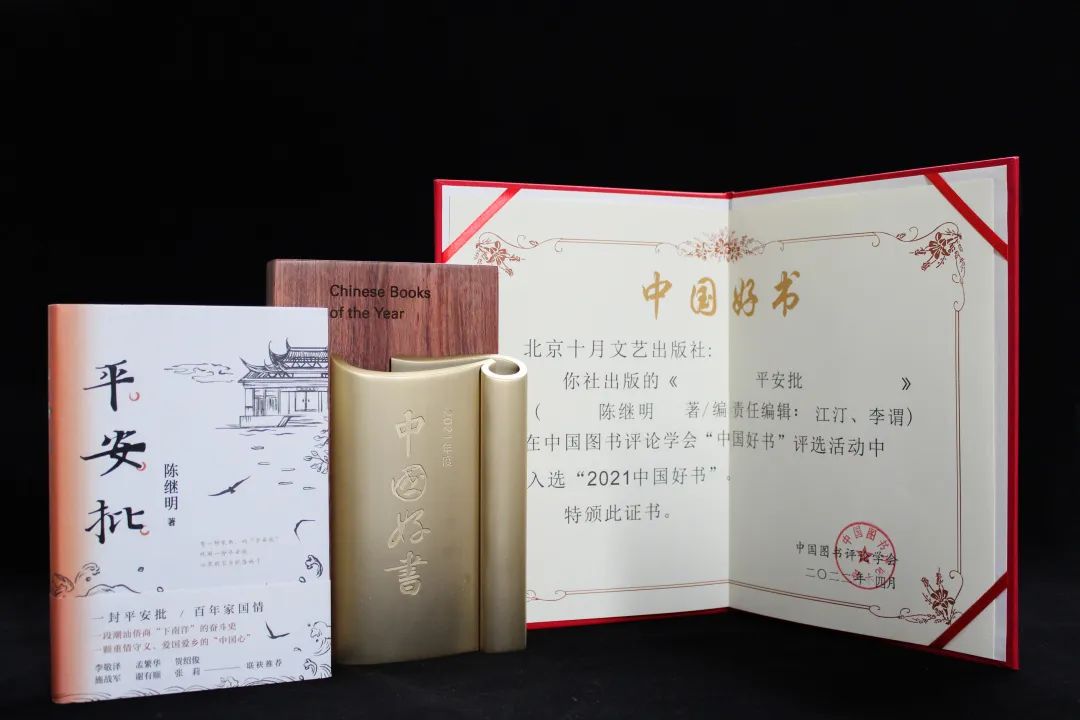 4月23日“世界读书日”当晚,在中宣部指导下,由中国图书评论学会组织评选的“2021中国好书”揭晓,共有42种图书入选。北京出版集团北京十月文艺出版社出版的《远去的白马》、北京十月文艺出版社和花城出版社联合出版的《平安批》荣获“2021中国好书”。