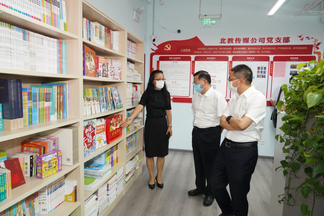 严卫群一行分别参观了集团社史馆、北教传媒公司和教材分公司,详细了解集团的历史沿革、对外交流所取得的发展成就和重点出版物等。