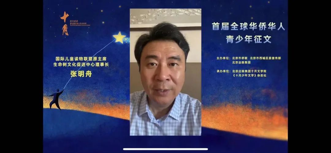 吴文学在讲话中谈到,北京出版集团有着 70 多年出版历史,此次联手北京市侨联,共同举办本次诗歌朗诵和征文活动目的就是为了在全球华侨华人青少年中传承和弘扬中华优秀诗歌文化。北京出版集团出品的《十月》杂志和《十月少年文学》杂志,多年来致力于弘扬中华优秀传统文化,打造原创纯文学期刊。特别是《十月少年文学》杂志,以推广和发掘优秀青少年文学作品为使命,在国内同类杂志中名列前茅。我们将以这次活动为契机,深化与北京市侨联的合作,更好地服务华侨华人文学爱好者,扩大中华文化海外朋友圈。吴文学还向全球华侨华人青少年发出邀请,希望他们积极创作,书写对世界、对历史、对未来的情怀,为弘扬中华文化、构建人类命运共同体作贡献。
