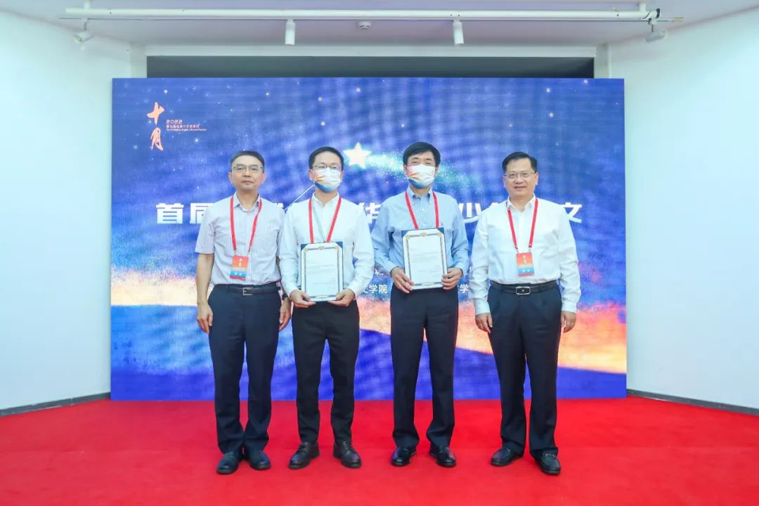 严卫群、吴文学为征文活动评审委员会专家代表曹文轩、程阳阳颁发聘书