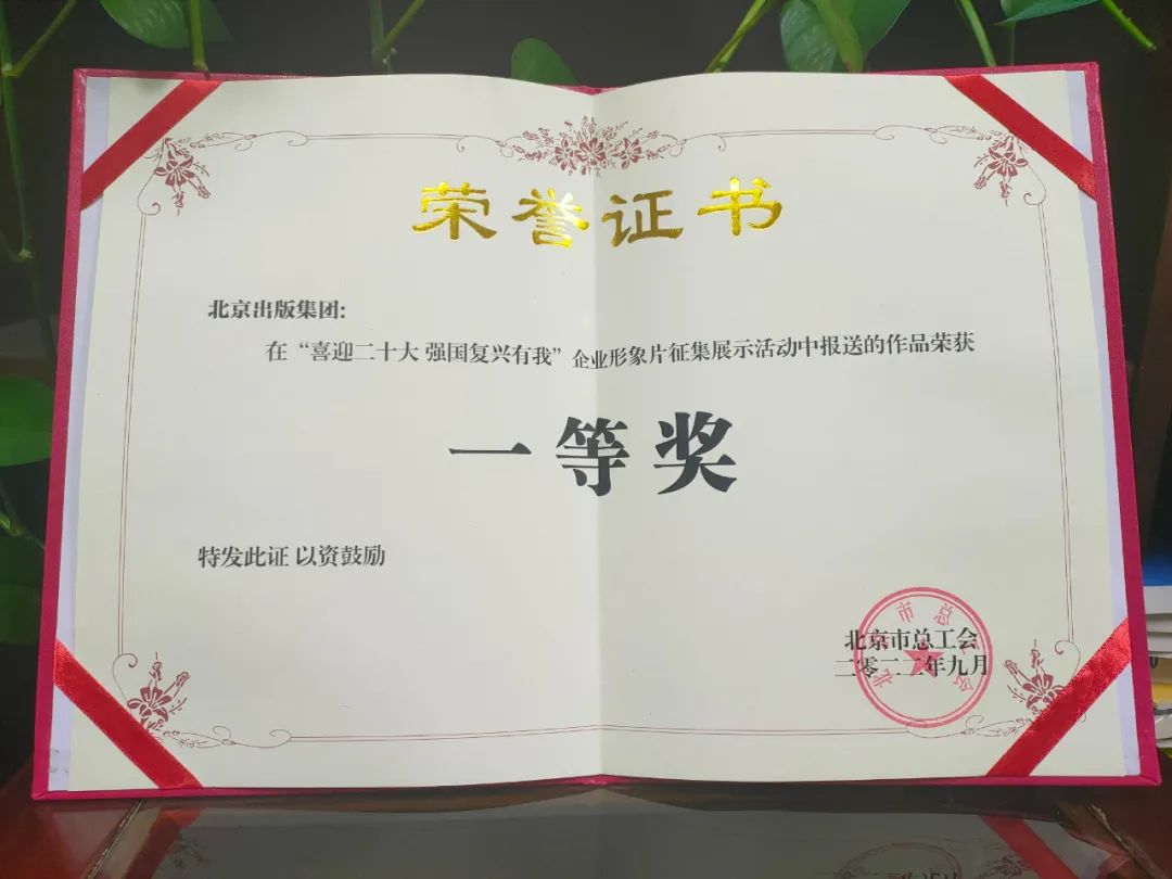 日前,在北京市总工会组织开展的“喜迎二十大 强国复兴有我”企业形象片征集展示活动中,北京出版集团报送的作品《红色传承》荣获一等奖。