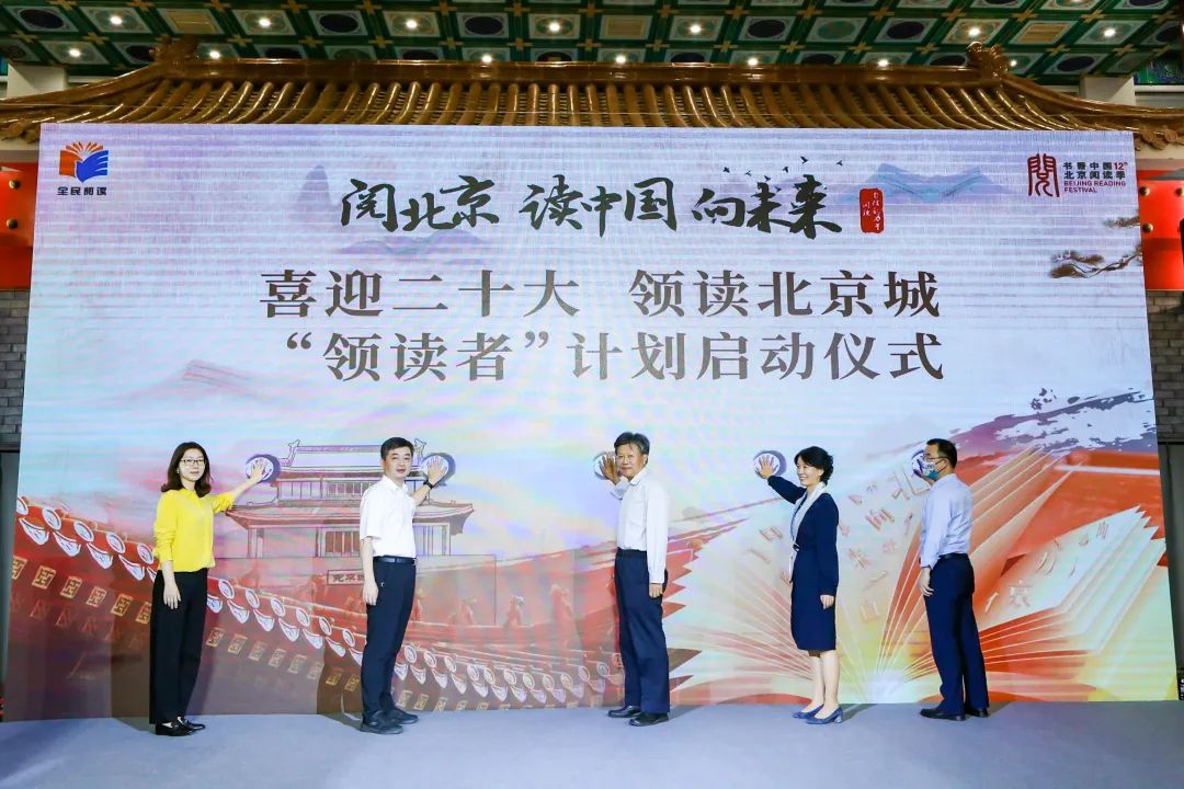 2022年北京阅读季“领读者”计划启动仪式现场,与会领导按下启动手印