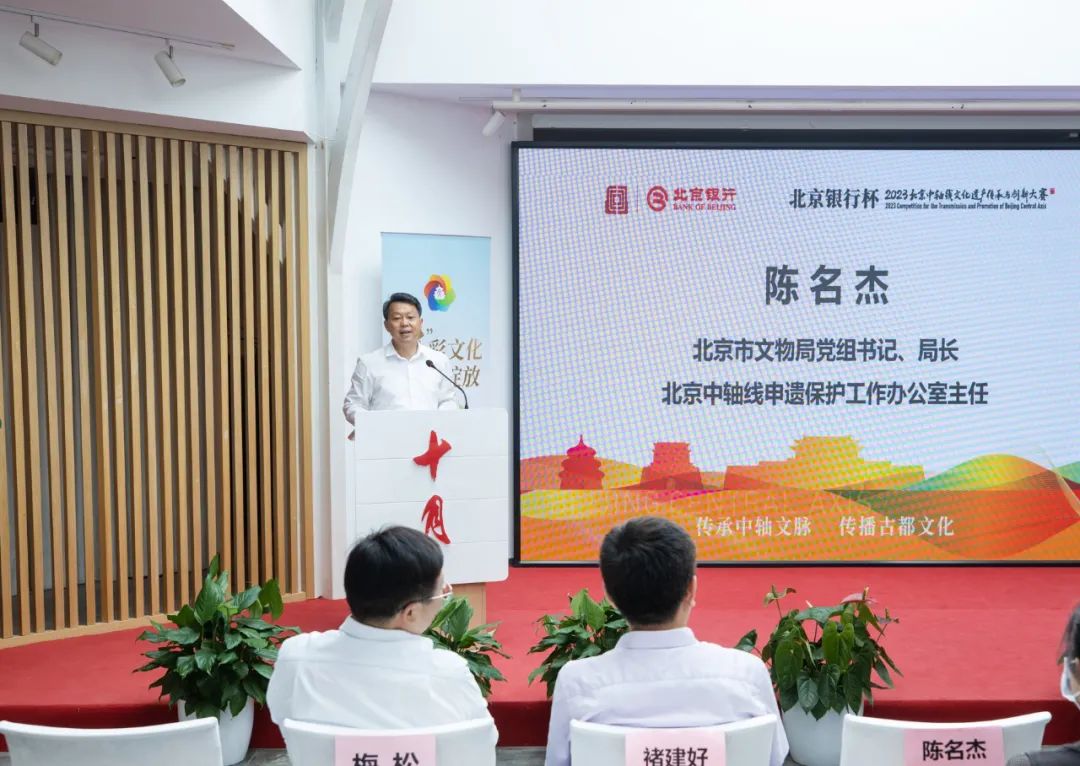 北京市文物局党组书记、局长、北京中轴线申遗保护工作办公室主任陈名杰,北京出版集团党委书记、董事长张爱军,北京市文物局党组成员、副局长、北京中轴线申遗保护工作办公室专职副主任褚建好,北京中轴线文化遗产传承与创新大赛专家委员会主任、北京京企中轴线保护公益基金会副理事长兼秘书长梅松等领导和嘉宾出席。