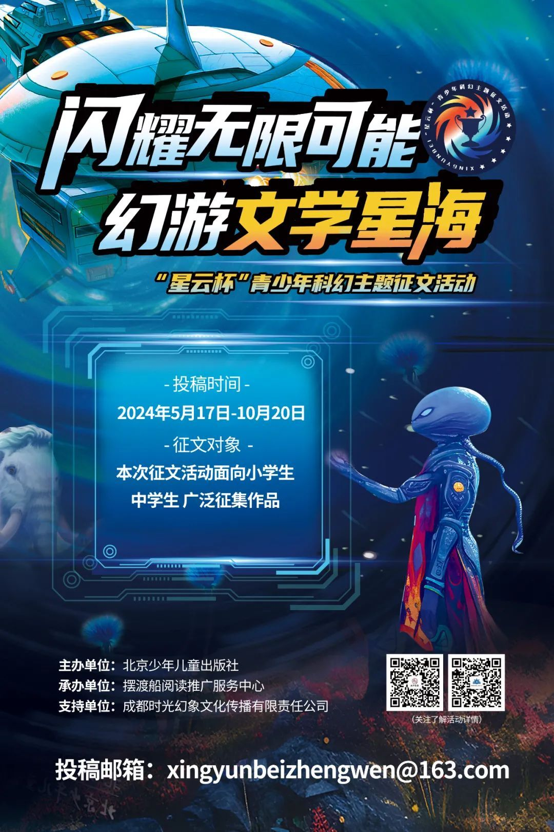 近日,由北京出版集团北京少年儿童出版社主办,摆渡船阅读推广服务中心承办,成都时光幻象文化传播有限责任公司协办,以“闪耀无限可能·幻游文学星海”为主题的“星云杯”青少年科幻主题征文活动正式启动。