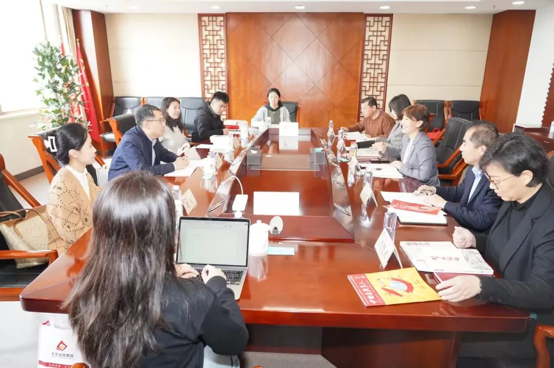 4月11日上午,退役军人事务部宣传中心副主任魏鑫一行到北京出版集团参访交流。集团党委副书记、董事曹蕾对魏鑫一行表示欢迎,主持座谈会并介绍有关情况。