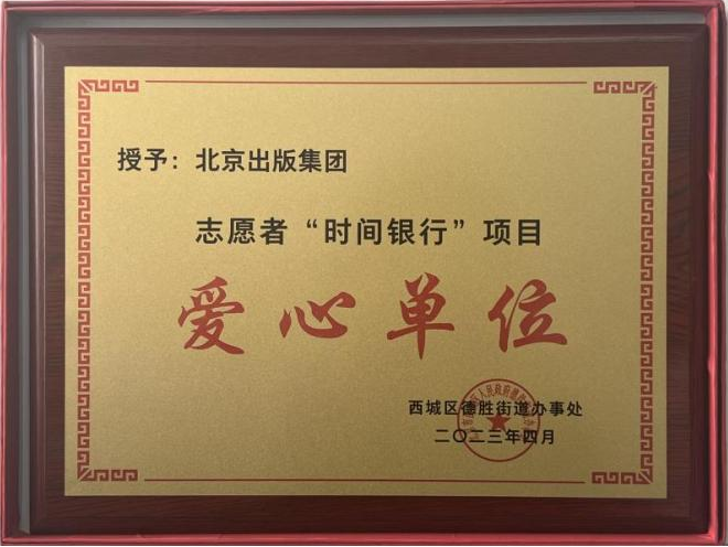 4月6日上午,西城区德胜街道北广社区“物业+养老”暨“时间银行”试点启动仪式成功举办。北京出版集团荣获“志愿者‘时间银行’项目爱心单位”称号。作为北京市属唯一的大型综合性出版机构,北京出版集团向“时间...