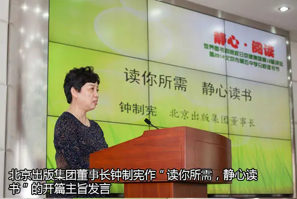 讲坛伊始,北京出版集团董事长钟制宪首先作了“读你所需,静心读书”的开篇主旨发言。作为多届“北京出版集团世界图书和版权日”纪念活动的策划人和有很深阅读情结的出版人,钟制宪一直关注国民阅读倾向和趋势,总能以独到的主题和深入的思考引起人们共鸣。此次她提出“静心•阅读”作为讲坛主题,正是看到在当今海量的各类信息面前,不少人迷茫浮躁,不知如何选择适合自己的读物,没有沉下心来静心阅读。作为出版人,有责任关注全民阅读,为推广阅读、丰富读者的阅读生活尽一份力。