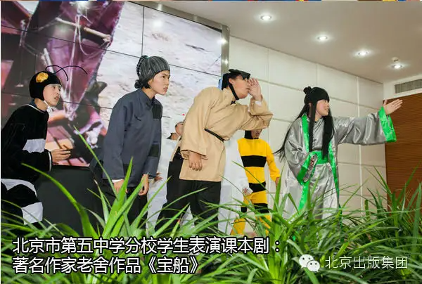 与会嘉宾们精彩的发言、渊博的学识得到了读者、同学们的一致认可和共鸣。 五中分校的同学们现场朗诵了老舍先生作品《想北平》,并表演了老舍先生唯一一部儿童剧《宝船》片段,大家共同感受了老舍先生作品的独特魅力。为了表达对公众的人文关怀,为促进全民阅读做出切实的努力,参与本次活动的演讲嘉宾还为在场爱书的朋友们每人推荐3本“静心之书”,供人们阅读参考,让读书成为每个人日常生活不可或缺的一部分。北京出版集团、嘉宾曹文轩分别向北京五中分校学生赠送了集团出版的精品好书《大家小书》《可怕的科学》《阳刚男孩》《麦场主》等,得到了学校师生的热烈欢迎。